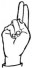 На ћирилици написано КОСТА БУМБАРЕВИЋ састоји се из 15 слова [?]. Исписано ћириличном једноручном азбуком за глувонеме: